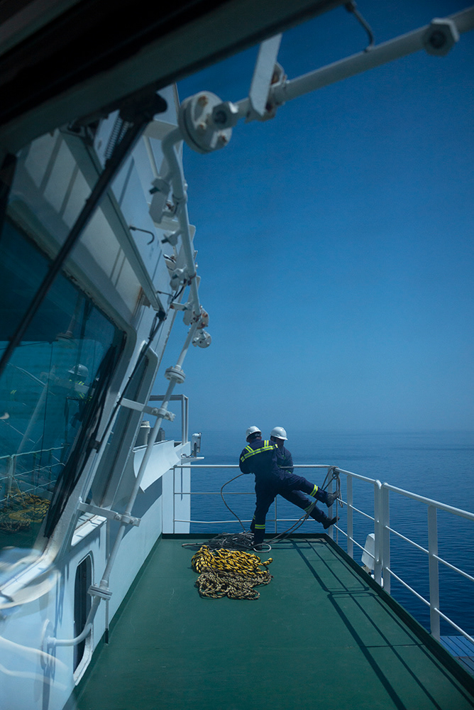 " LES GEANTS DE LA MER " C'était il y a quelques années à peine, dans un improbable monde antérieur, où les ports internationaux étaient ouverts à tous les vents, où le passeport français permettait de faire toutes les escales voulues sans encombre, où le confinement de six semaines était volontaire et jubilatoire, où j'avais l'intuition confuse en embarquant sur un méga porte-conteneurs que s'y révélait la paradoxale fragilité de la mondialisation triomphante. Six semaines de navigation entre Le Havre et Busan en Corée du Sud, à bord d’un cargo de 18 000 conteneurs pour partager le quotidien des marins et mieux comprendre comment ces nouveaux Géants de la mer bouleversent le commerce maritime international et ses infrastructures.