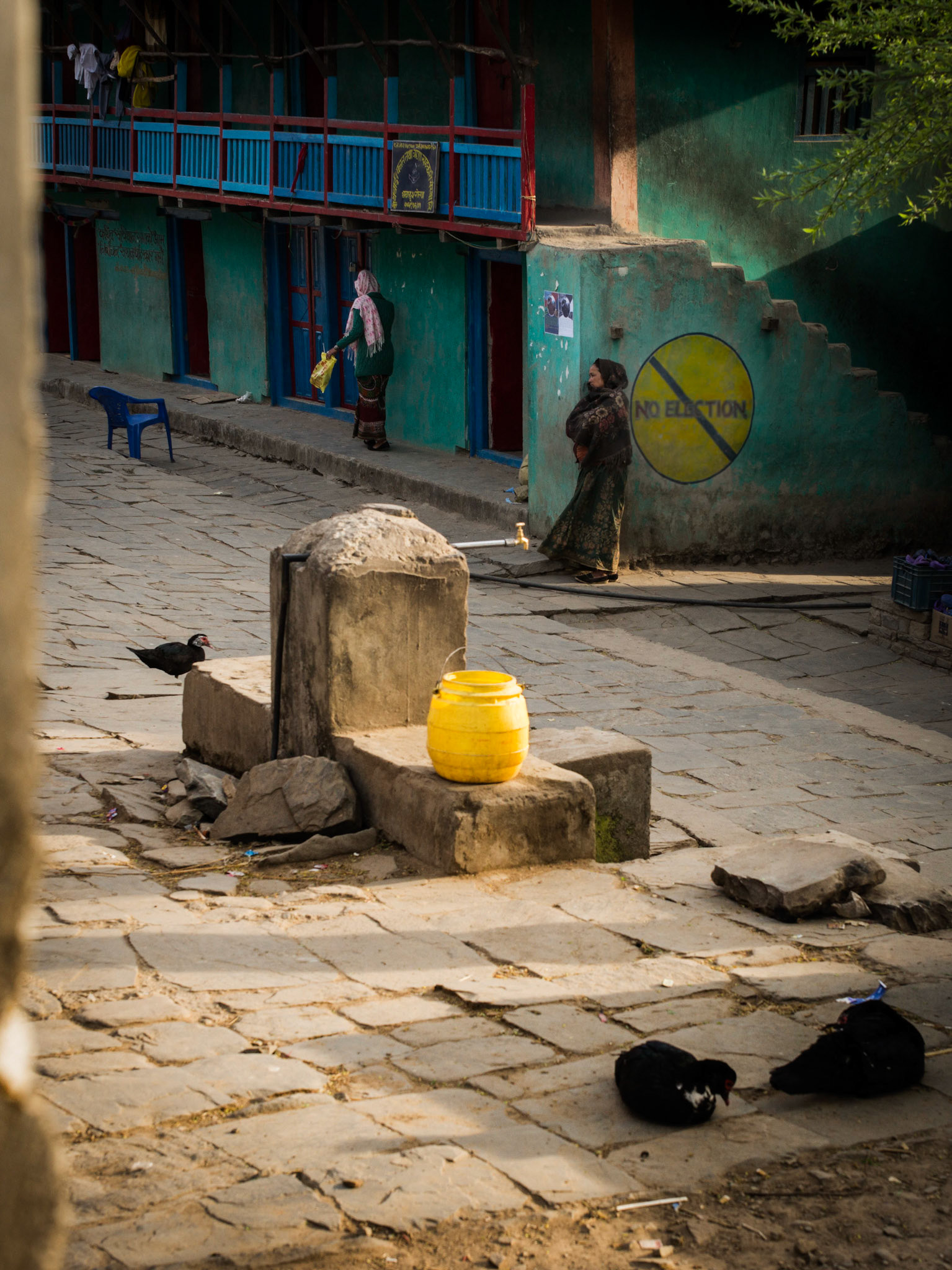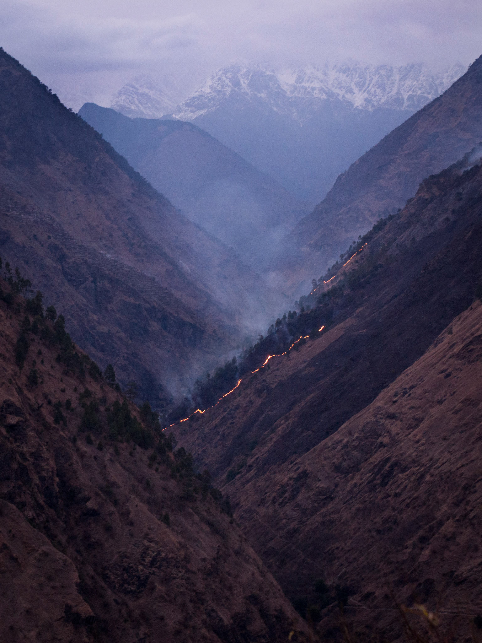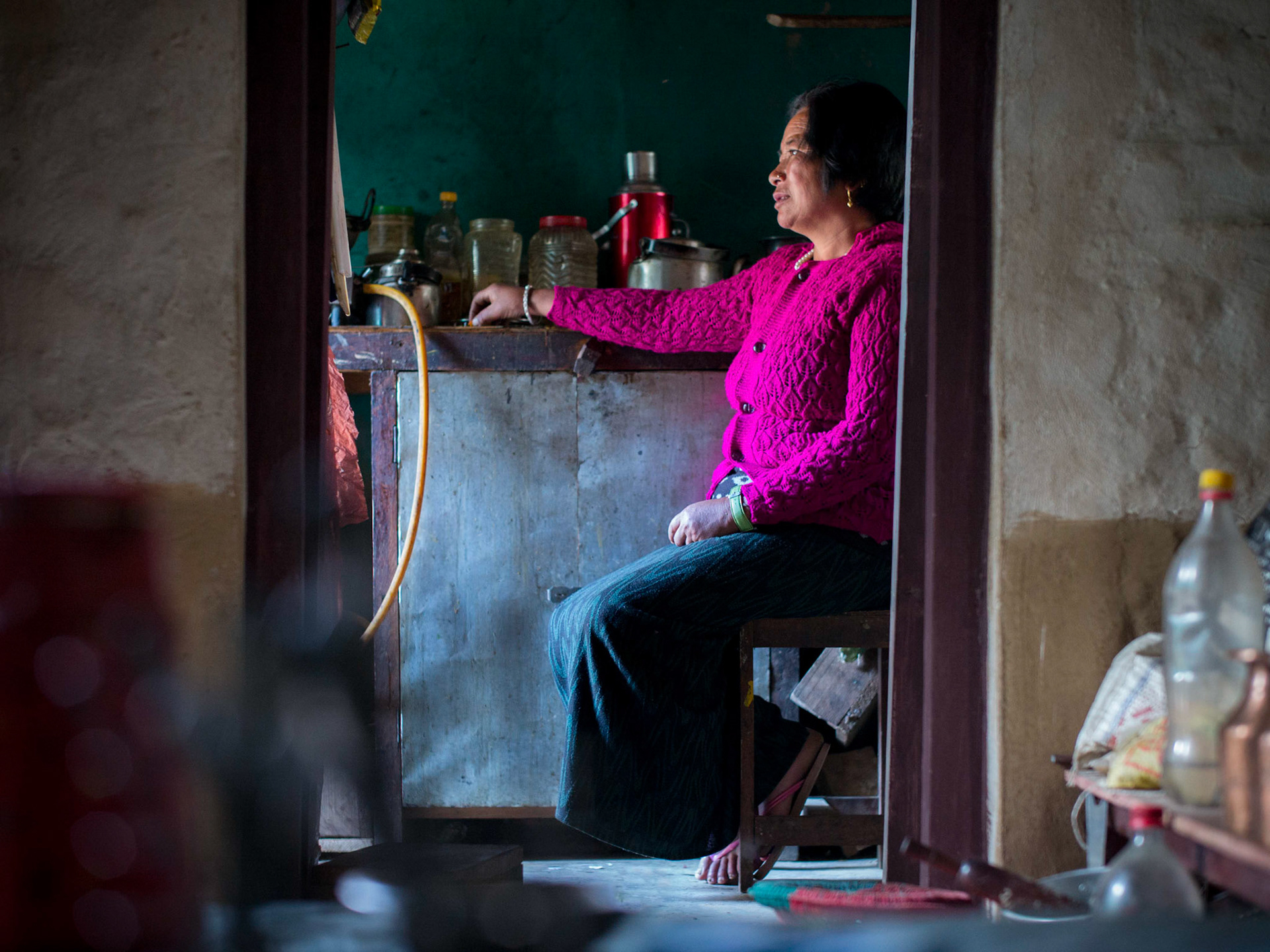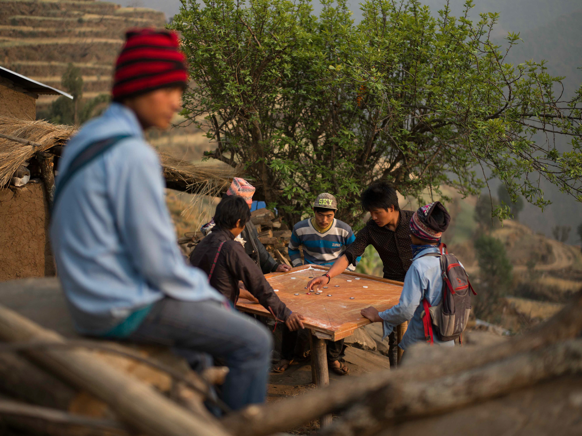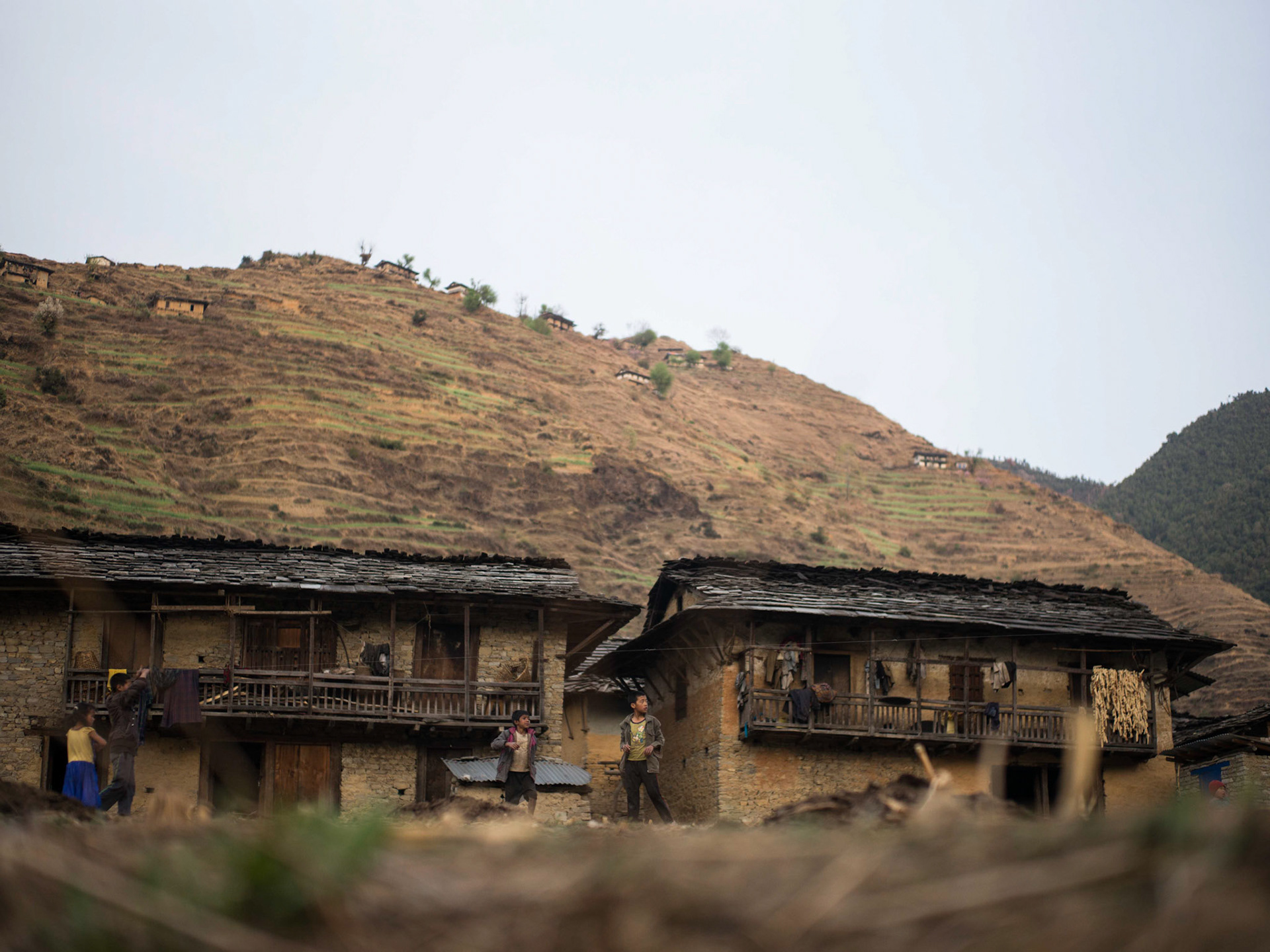 Plus on avance vers le Nord du Rukum, plus la vie se fait rude et plus les terres cultivables se font rares. « Notre nourriture est le maïs, notre arme est la faucille » disait une chanson de propagande communiste, marquant la différence culturelle de ces régions reculées avec celles des mangeurs de "dal bhat" (plat de riz et de lentilles, consommé quotidiennement dans la majeure partie du pays). Les terrasses de céréales laissent place, encore plus haut, aux pâturages des moutons. Depuis la fin du conflit, les transhumances ont pu reprendre. Mais la région est loin d'être autosuffisante au niveau agricole. L'arrivée très récente de l'électricité, et la construction des nombreuses pistes au bulldozer, offrent de toutes nouvelles perspectives d'échanges et de commerce. Mais sous la pression démographique, la plupart des jeunes hommes travaillent ailleurs, dans d'autres régions du pays ou à l'étranger. Dubaï, Arabie Saoudite, Malaisie, Philippines, Singapour : presque chaque maison arbore ses posters plastifiés de paradis économiques improbables. Quel pourcentage des ressources familiales représentent aujourd'hui ces revenus étrangers ? Et celui du trafic de haschich ? En moyenne altitude, la marijuana recouvre le moindre terrain en jachère. La vente est officiellement interdite depuis 1976, mais la culture n'a jamais cessé. Les maoïstes eux-mêmes ont fermé les yeux sur ce trafic qui permet aux paysans de compenser l'insuffisance des terres agricoles. Devant sa maison, une vieille femme édentée deale avec un homme venu de Pokhara. Les prix sont dérisoires, la marchandise réputée de première qualité.